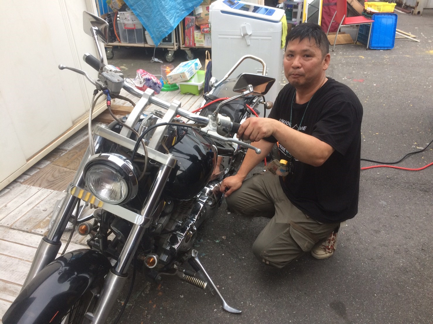 こちらではバイクのメンテナンス中!