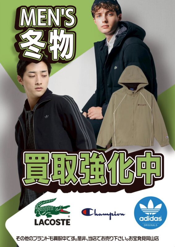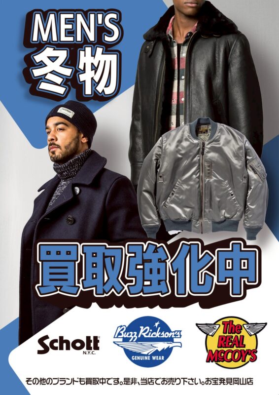 メンズの冬物衣料を買取強化中!