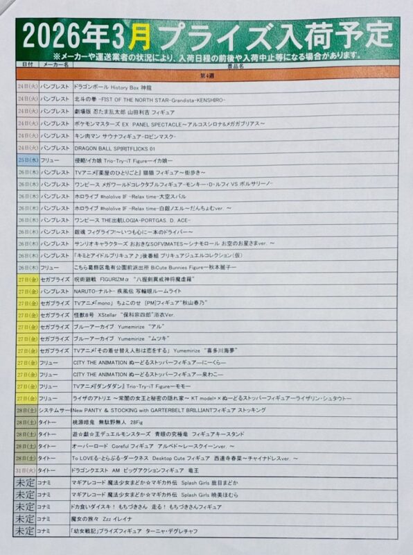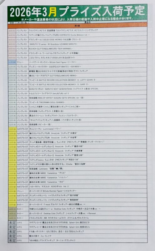 【3月プライズ入荷予定❗️】