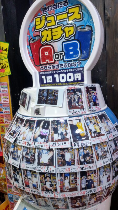 駄菓子コーナーのすぐ真横には「ジュースガチャ」と
