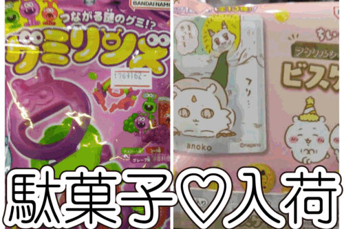 ☆駄菓子 入荷✨🍬【つながる謎のグミ❗グミリンズ❗】【ちぃかわビスケット🍪アクリルシーンクリップ付き😍】#お宝発見岡山店